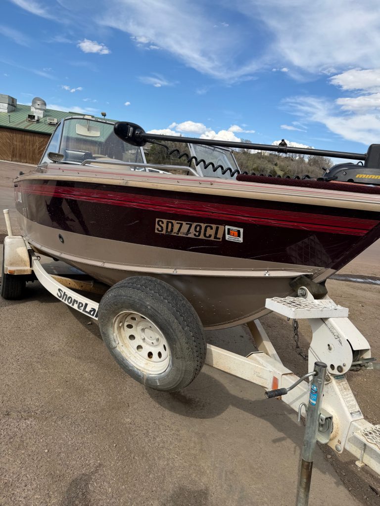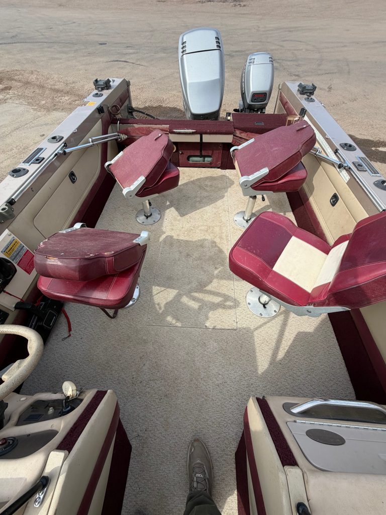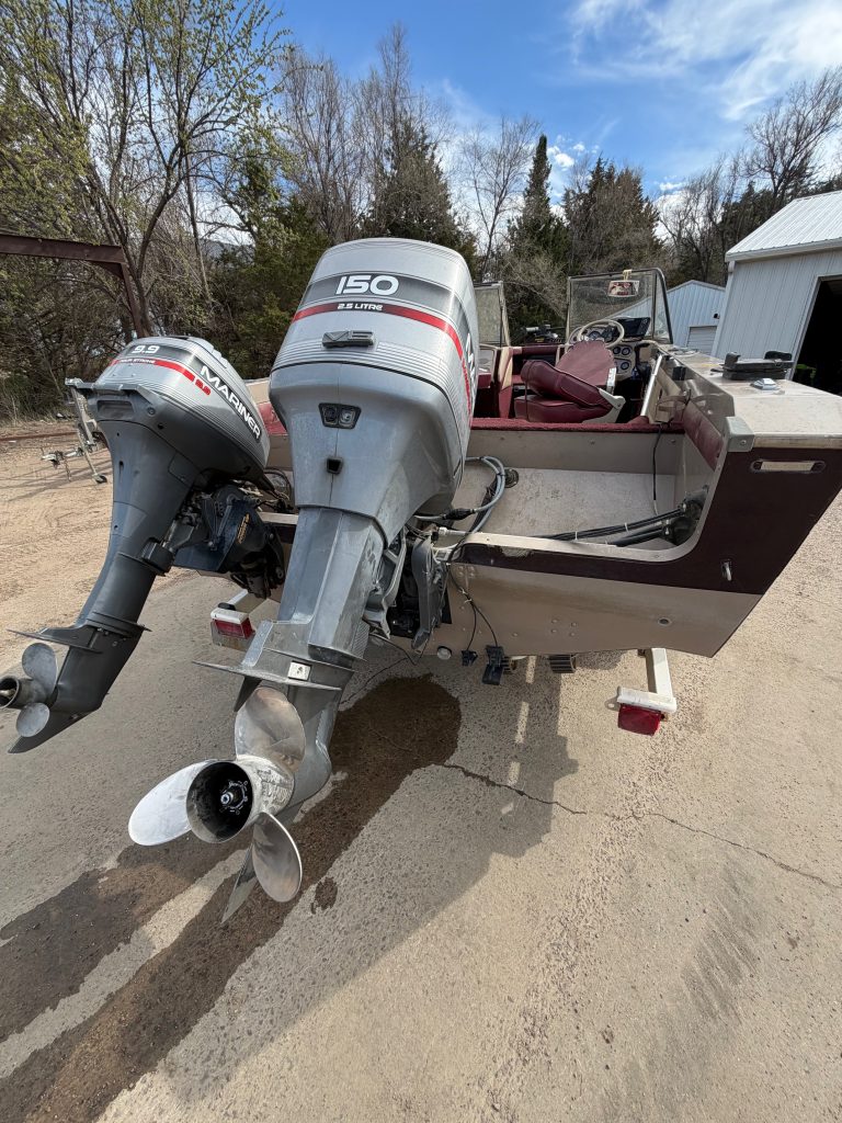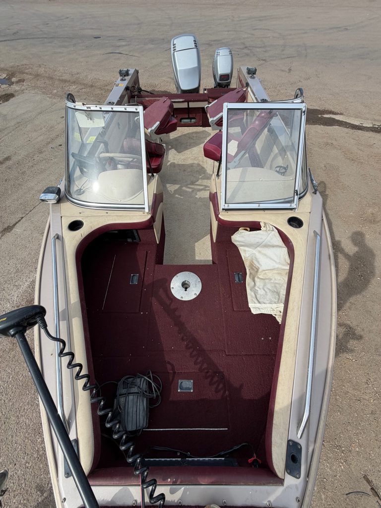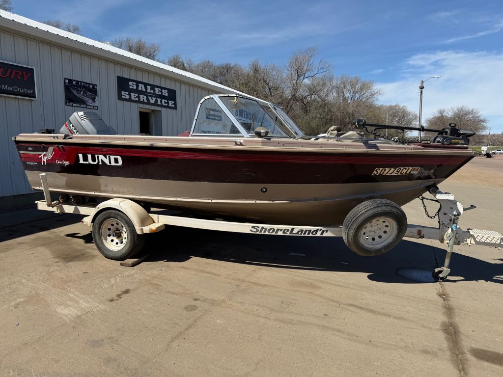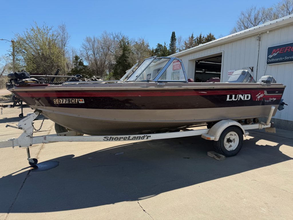 1996 Lund 1850 Tyee Gran Sport, 1996 Mariner 150 two stroke EFI, 1996 Mariner 9.9 kicker with power trim, 1996 Shorelandr single axle roller trailer, Helix 7si, four seats, two bimini tops, two live wells, cover, 24v Minnkota copilot with foot pedal